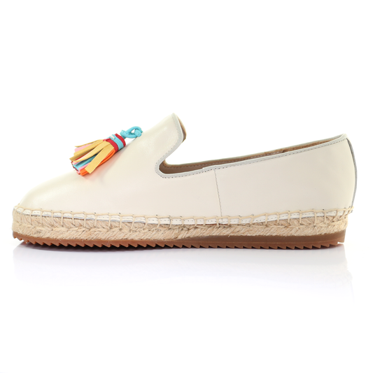 カラータッセル付レザー エスパドリーユ【本革】ホワイト