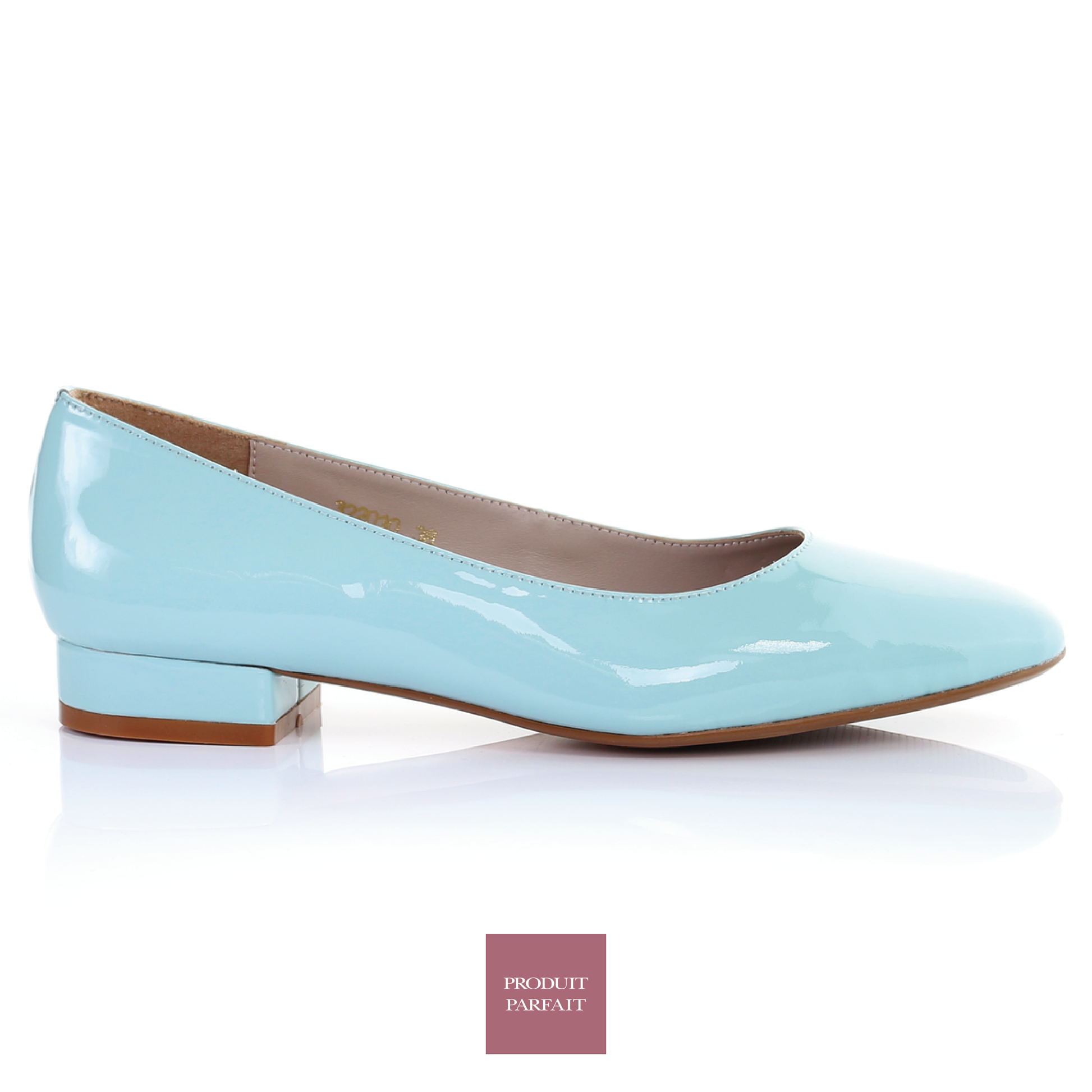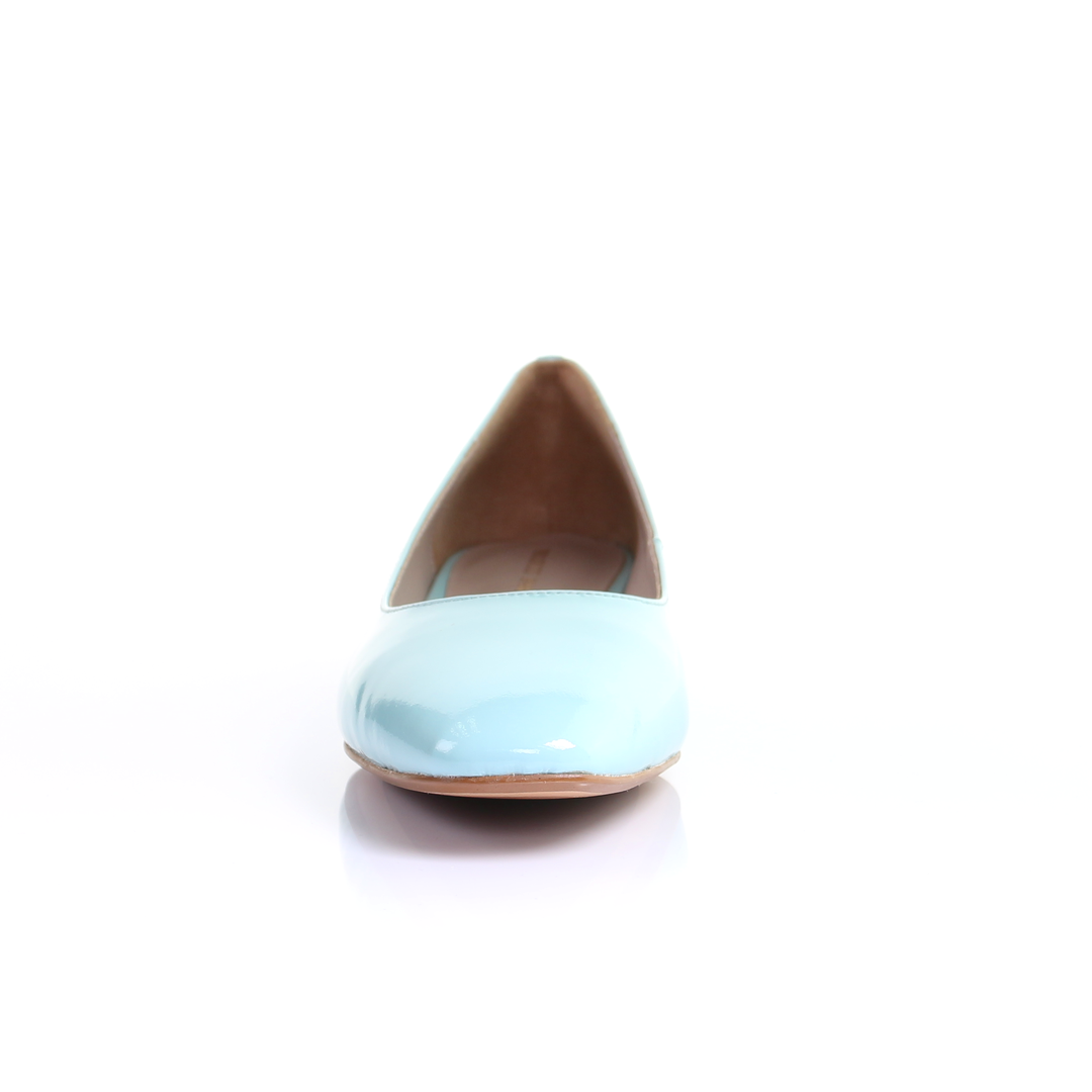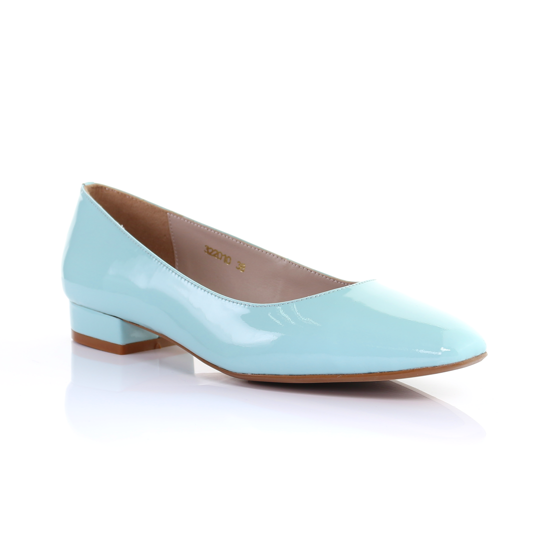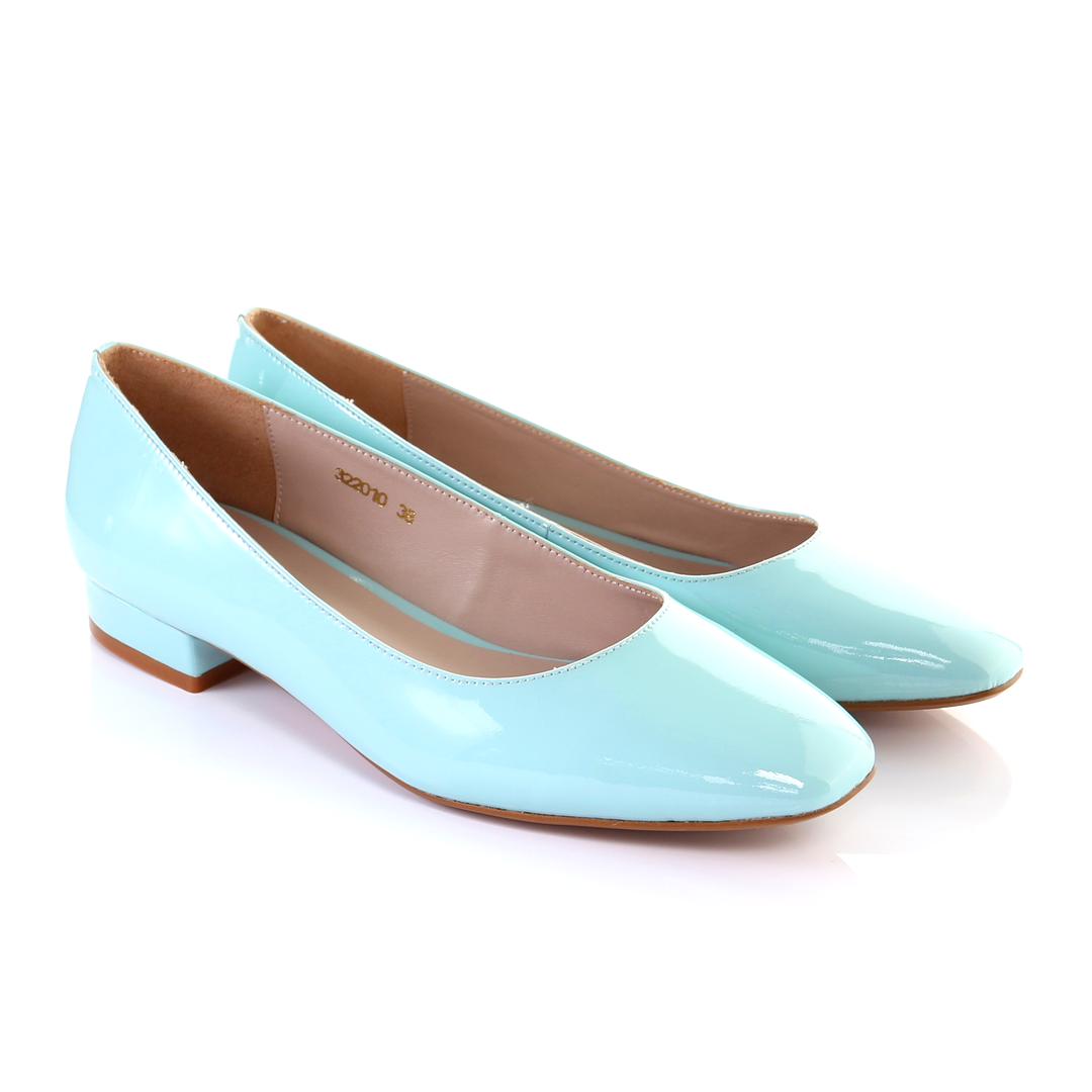 エナメル スクエアトゥパンプス【本革】ライトブルー