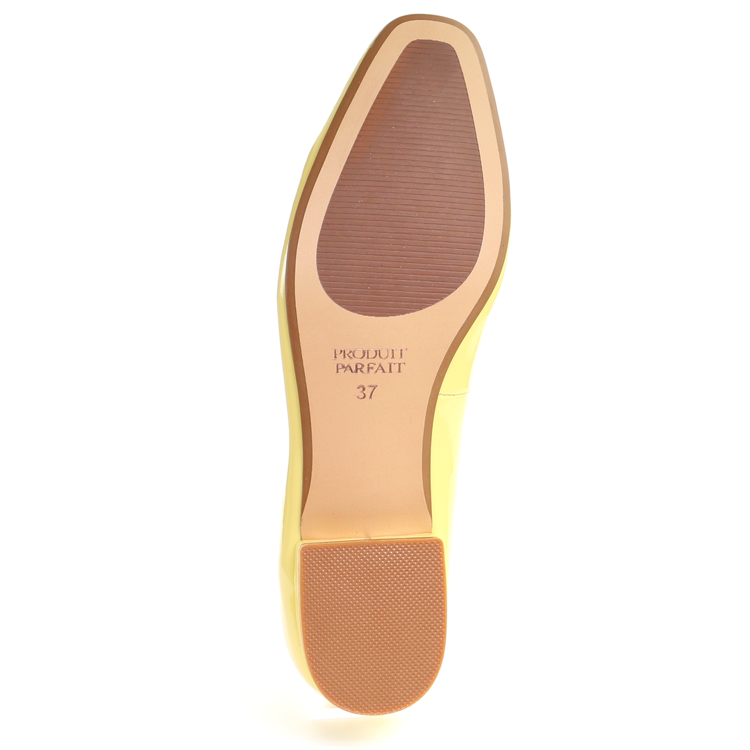 ふわっふわのインソールに履きやすくて脚がきれいに見えるローヒール、アッパーにはリアルエナメル皮革を使用。きめが細かく、質感が良くて足に馴染みやすいのが特徴です。